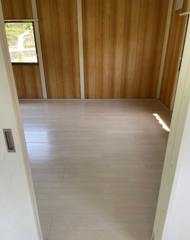 施工は、室内の物品を搬出した後、ポリッシャーを使用して行い、スタッフ全員が故人様の御冥福を祈りながら清掃を実施しました。