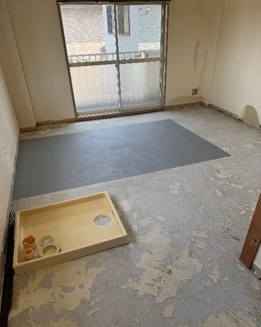 作業内容としては、モルタルに直接貼られたクッションフロアの撤去、床面の洗浄と防臭コーティングを実施しました。玄関付近にあるユニットバスにはわずかに臭気が残っていましたが、カビ除去を含む徹底洗浄を行い、衛生的な状態に回復させました。