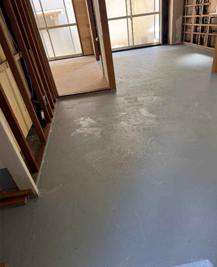 作業では、床や壁に残っていた臭気源を取り除き、薬剤を用いた洗浄を行ったうえで消臭工程を実施しました。