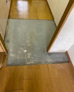 搬出後、フローリングには液体が染み込んだ跡が複数見られたため、臭気対策として追加の消臭工程を実施し、約1週間の処置を行いました。