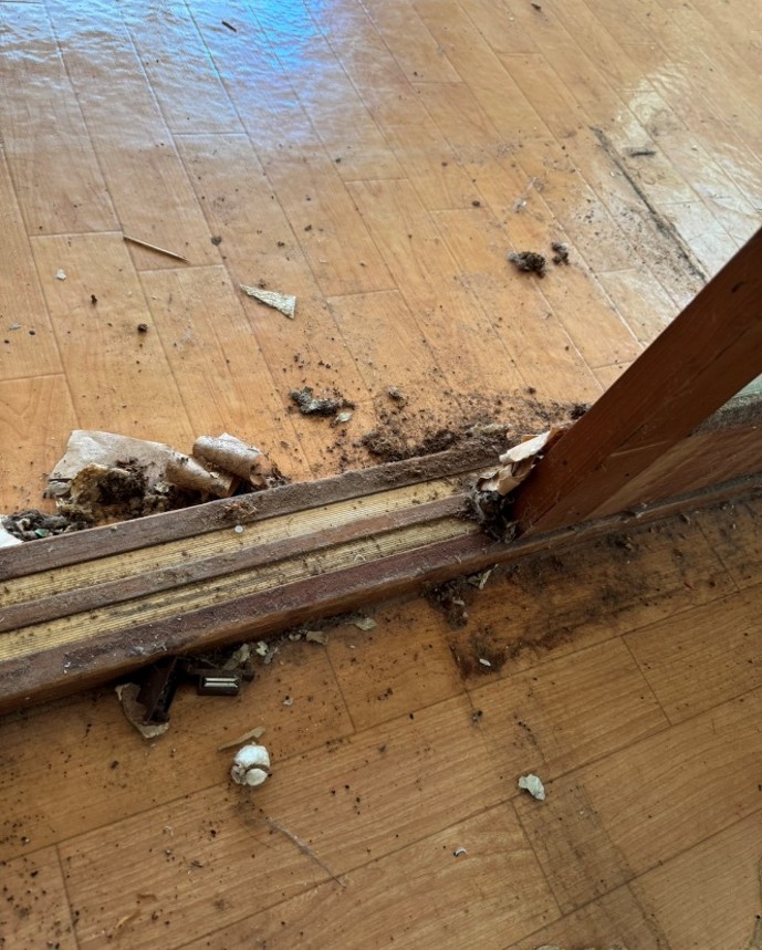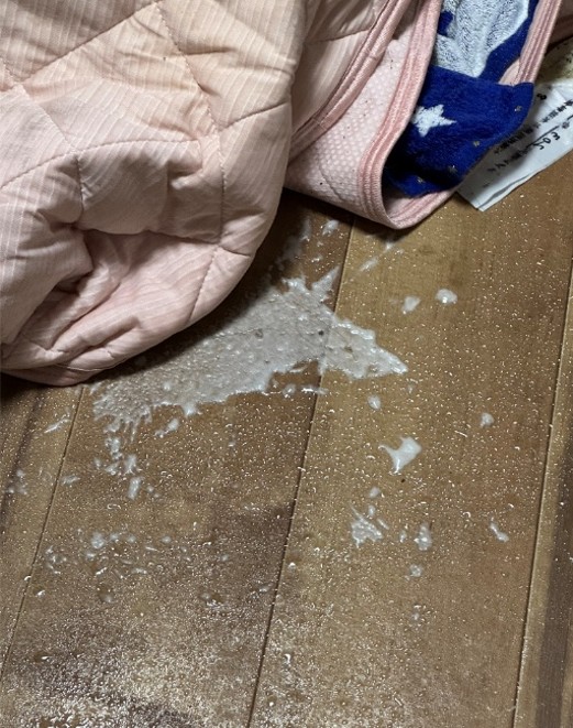 床下まで体液が浸透した住宅の清掃事例|土壌撤去とオゾン燻蒸で消臭対応
