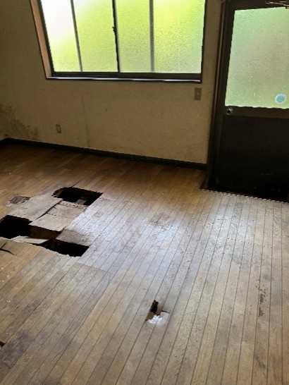 空き家の整理作業では、長年手入れされていなかった床材が腐食しているケースがあります。特に床下の通気が悪い住宅や、シロアリ、雨漏りなどの影響を受けている場合、搬出作業中に床が抜ける危険性が高まります。